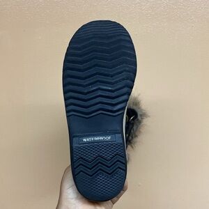 UPPER: Available in a waterproof suede upper with faux fur cuff or a waterproof suede upper with faux shearling cuff. Seam-sealed waterproof construction. Laces are not waterproof.