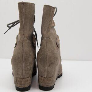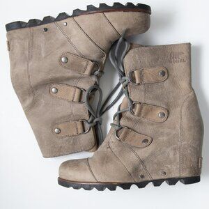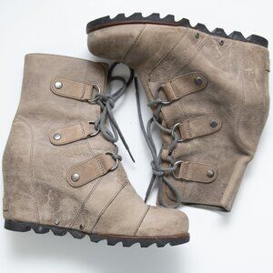 Sorel Joan Of Arctic Wedge Boot Wedge Ankle Leather Dark Fog Brown Size 7.5