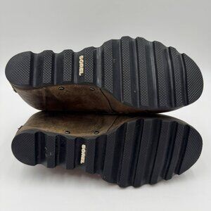 Sorel Joan Of Arctic Wedge Boots Brown Rustic Leather Lace-Up Womens Size 9