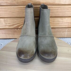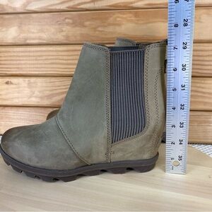 Sorel Joan Of Arctic Wedge Hidden Heel Leather Distressed Taupe Chelsea Ankle Boots Booties NL3022-240 Biker Western Pull-on
