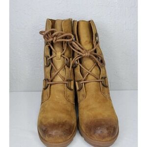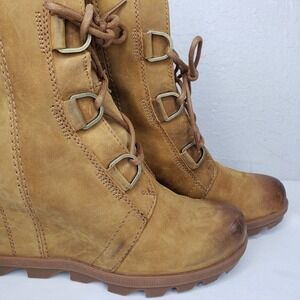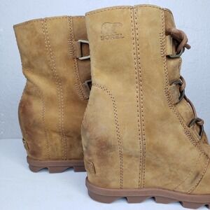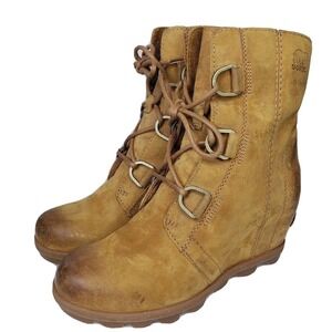 Sorel Joan Of Arctic Wedge II Camel Brown Leather Wedge Ankle Boots