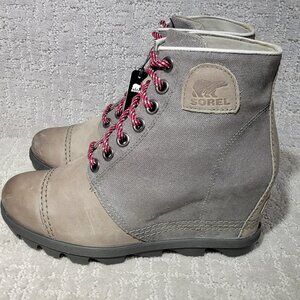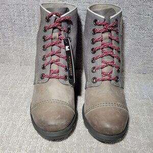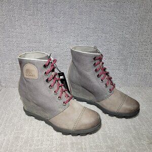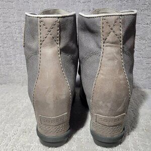 Sorel Joan Of Arctic Women's Size US 9.5 Gray Leather Canvas Upper Wedge Boots
