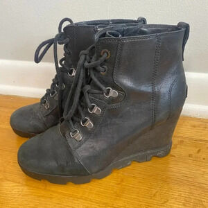 Sorel Joan Uptown Black Lace Wedge Bootie
