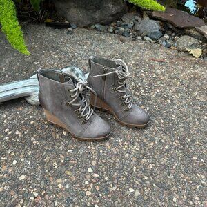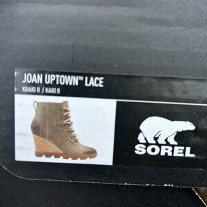 Sorel Joan Uptown Lace Khaki II Waterproof Wedge Boots Size 6 NIB