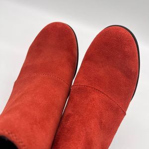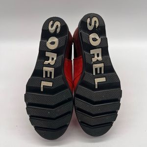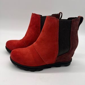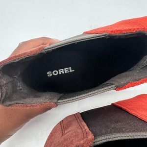 Sorel Joan Wedge Chelsea II. Perfect for keeping your feet warm and dry in the winter. Brown and orange with black sides. Easy to slip into and out.