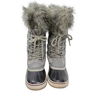 Sorel Joan of Arc Boots Gray Leather Warm Snow Winter Waterproof Women’s Size 9