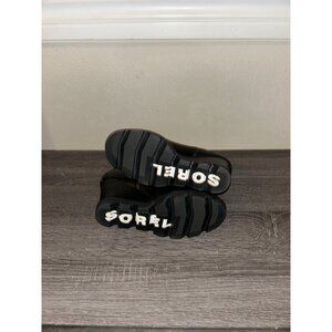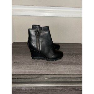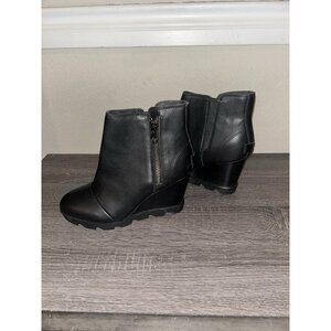 Sorel Joan of Arctic Black Leather Round Toe Mid Wedge Side Zip Ankle Boots 6