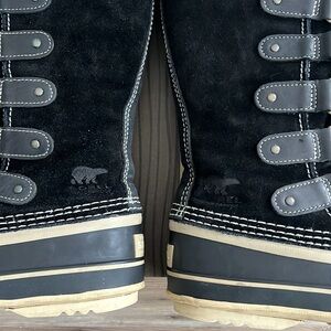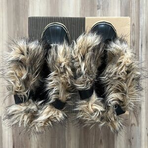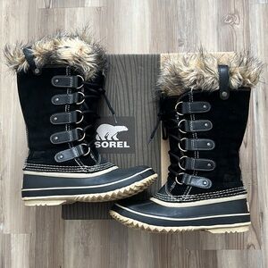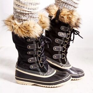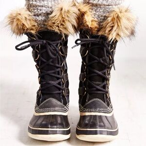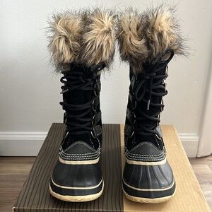 Sorel Joan of Arctic Black Tan Winter Boots Faux Fur
