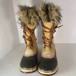 Sorel Joan of Arctic Boots Sz 11 Suede Faux Fur Lined Tan Fur-Lined Winter
