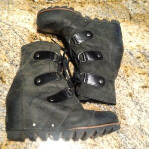 Sorel Joan of Arctic Brown Leather Lace Up Wedge Boots NL1987-028 Women's Sz 6.5