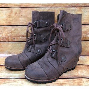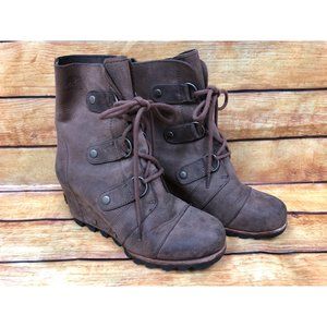Sorel Joan of Arctic Brown Leather Nl2305-256 Booties Boots Womens 6 /37 (o7c)