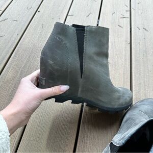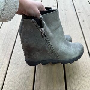 Sorel Joan of Arctic II Zip Wedge Booties Gray Leather Upper Size 10 Women’s