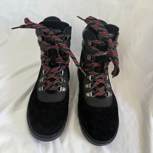 Sorel Joan of Arctic Next Lite Hiker Boots Black Red Waterproof Winter Size 6.5