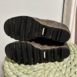 Sorel Joan of Arctic Rustic Brown Leather Lace Up Hidden Wedge Boots