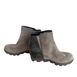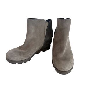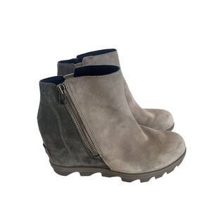 Sorel Joan of Arctic Sage Green two tone Suede Wedge II zip ankle boots Size 7.5