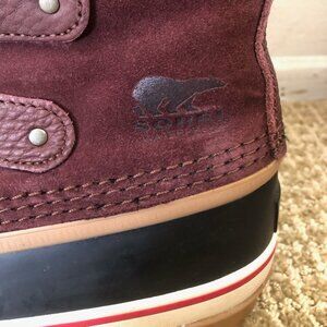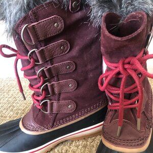Warm comfy Sorel boots in a beautiful burgundy color with faux fur removable liner. Wore probably once maybe twice.