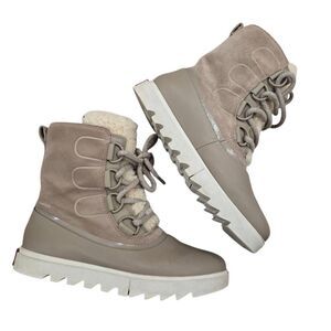 Sorel Joan of Arctic Snow Next Lite Boots Women's 8 Taupe Leather Fur Lined Wate