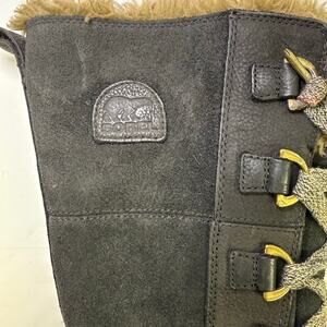 Stay warm and stylish this winter with these Sorel Joan of Arctic tall dark brown snow boots. Built with a durable suede and leather upper, faux fur trim, and rugged rubber sole, these boots are designed for cold weather protection and lasting comfort. The lace-up front ensures a secure fit, while the faux fur lining provides insulation and a cozy feel. Waterproof construction makes them a reliable choice for snow, slush, and winter adventures.