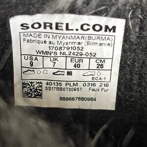 Sorel Joan of Arctic Waterproof Faux Fur Snow Boot Gray Black Women's Size 9