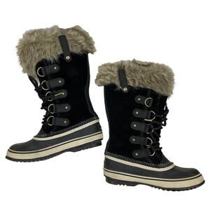 Sorel Joan of Arctic Waterproof Snow Boots Faux Fur Black Size 7