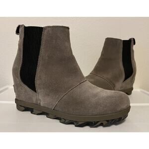 Sorel Joan of Arctic Waterproof Suede Hidden Wedge Ankle Boot Green Women’s Sz 8