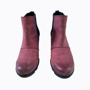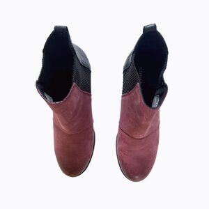 Step out in style and comfort with these Sorel Joan of Arctic Wedge III Chelsea ankle booties, blending rugged functionality with a chic modern aesthetic. Crafted from high-quality waterproof leather in a sophisticated dusty rose/rich wine and black color combination, these booties are designed to keep your feet dry even in rainy weather. The stretchy sides allow for easy slip-on and off, while a cushioned footbed ensures all-day comfort, making them ideal for long walks or hours of standing. With a durable rubber sole providing excellent grip on wet surfaces, these versatile ankle boots offer both a modern look and reliable performance.