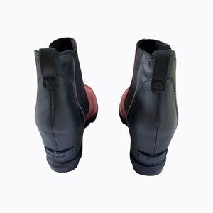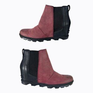 Sorel Joan of Arctic Wedge Chelsea Boots Sz 10.5 Waterproof Leather Rose/Black