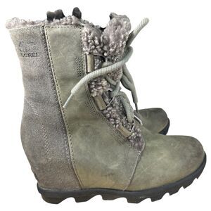 Sorel Joan of Arctic Wedge II Boot Quarry Green Sherpa Lined Women's Size 8