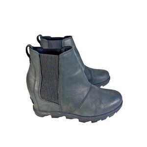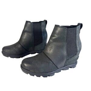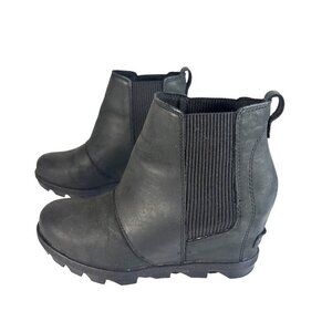 Sorel Joan of Arctic Wedge II Chelsea Boot Black Leather Pull-On Women’s Sz 8