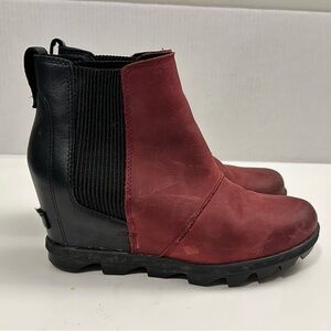 Sorel Joan of Arctic Wedge II Leather Wine Boots Size 8.5
