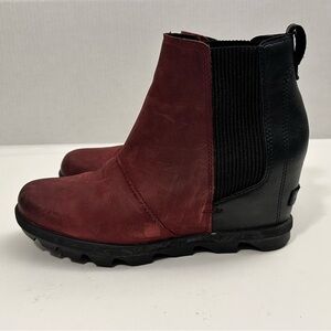 Sorel Joan of Arctic Wedge II Leather Wine Boots Size 8.5