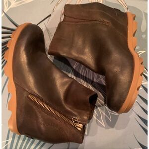 Sorel Joan of Arctic Wedge II Zip Brown Leather Boots sz 8