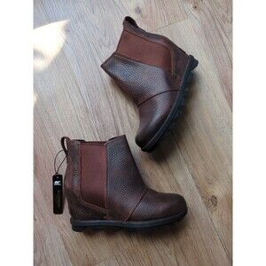 Sorel Joan of Arctic Wedge III Brown Tumbled Leather Chelsea Boots Womens 7