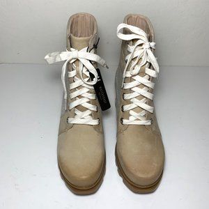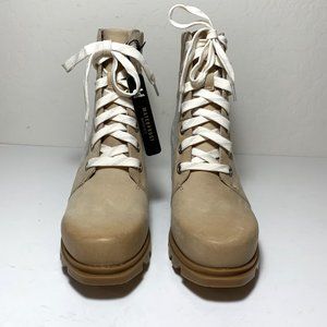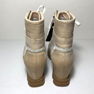 NEW Sorel Joan of Arctic Wedge III Lexie Lace Up Boots Leather Booties Natural Tan Size 8
