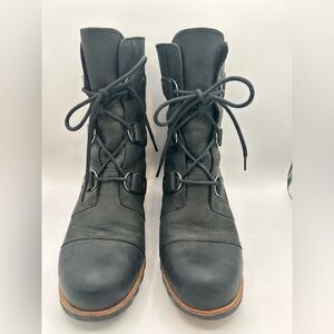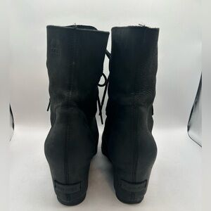 Sorel Joan of Arctic Wedge Mid Boots Black Leather Lace-Up Waterproof Women’s 12