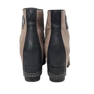 The Sorel Joan of Arctic Wedge PDX 1964 Waterproof Lace Up Leather Ankle Booties in size 7.5 are stylish and functional footwear perfect for travel and casual occasions. These beige booties feature a lace-up closure, high wedge heel, and are made of waterproof leather with a rubber outsole for durability. The ankle height and outdoor theme make them a versatile and practical choice for women looking for a fashionable yet comfortable boot option.