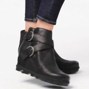 Sorel Joan of Arctic size 10 Waterproof Leather Wedge II Buckle Boot, Black