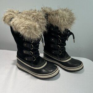 Sorel Joan of Artic Waterproof Boots Women's Size 6 in the colorway Black Quarry, Suede Winter Snow