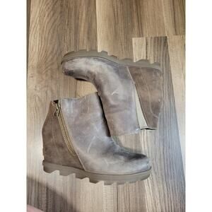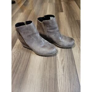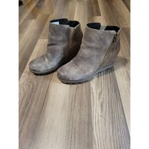 Sorel Joan of Artic Wedge Distressed Suede Leather Ankle Boots Women's Size 7.5