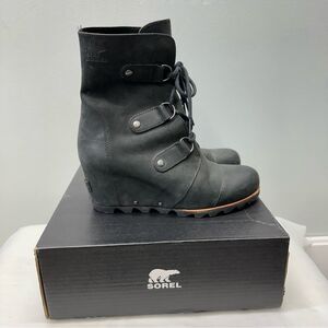 Sorel Joan of Artic black leather wedge boots. women's 10. excellent condition