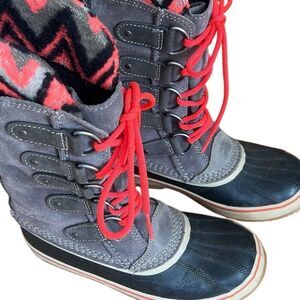 Sorel Joan Of Arctic Knit II Waterproof Rain Snow Winter Boots Gray Pink Size 8.