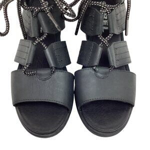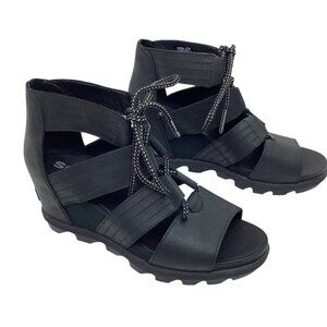 Sorel Joanie Gladiator Wedge Womens 8 Leather Sandals Black Lace-Up NWOT