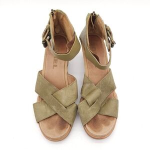 Sorel Joanie II (Womens Size 8) Ankle Strap Zip Wedge Open Sandals Green Leather