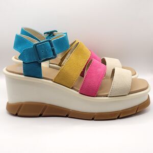 Sorel Joanie III Ankle Strap Wedge Sandals Size 8.5 Multicolor Teal Pink Gum New