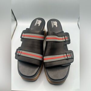 Sorel Joanie III Leather Chunky Platform Slide Sandals Black Gum Size: 11