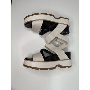 These Sorel platform wedges are so comfortable, while added an extra style to your everyday wear! The cute braided black mixed with grey leather offers neutrality that matches any outfit! Removable EVA footbed with a synthetic topcover. Durable and molded rubber outsole with ground contact EVA. Heel shaft 2.97". Comfort and style all day! Shoes are in excellent used condition, with a few small marks and sticker residue. See all photos before purchasing and ask any questions below!