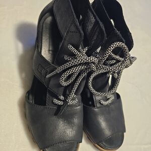 Sorel Joanie Wedge Sandals Size 9 Black Lace Up Leather
