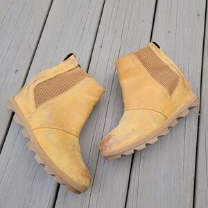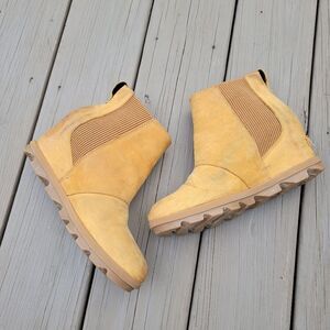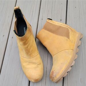 Sorel Joan of Arctic Wedge ll Chestnut Tan Burnished Leather Chelsea Ankle Boots