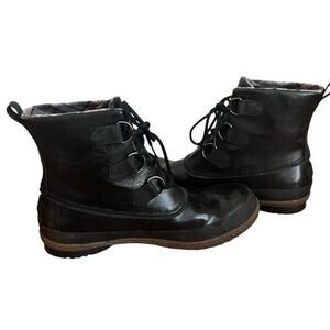 Sorel Joplin Black Leather Rubber Waterproof Lace Up Rain Boots
