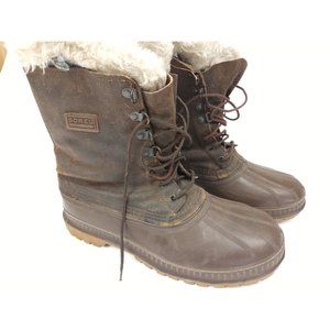 Sorel Kaufman Mens Size 10 Winter Lined Steel Shank Duck Boots Brown